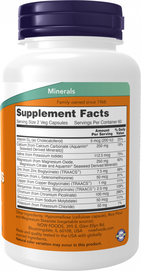 NOW Foods – Fuldspektret Mineraler, Jernfri – 240 kapsler