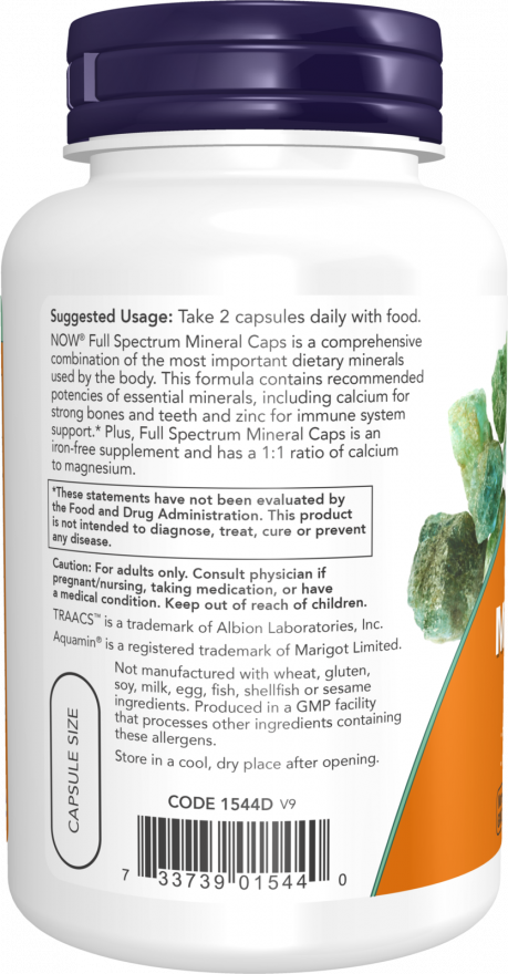 NOW Foods Fuldspektret Mineraler so na voljo v priročni obliki kapsul,kar olajša njihovo vsakodnevno uporabo. Kapsule so prav tako brez železa, kar jih naredi primerno izbiro za tiste, ki iščejo mineralni dodatek brez železa.