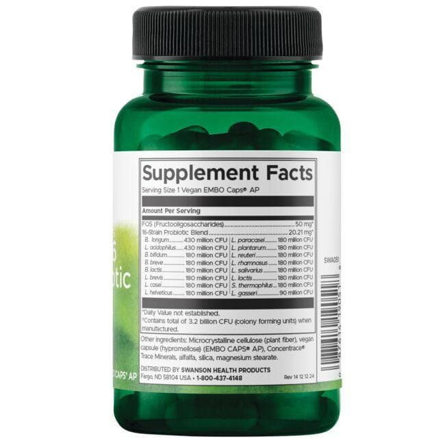 odkrijte Swanson – Dr. Stephen Langers Ultimative 16-stamme Probiotika med FOS, ki predstavlja naravno izbiro za vse, ki cenijo visoko kakovost in praktičnost v vsakdanjem življenju. Ta prehranski dodatek je zasnovan z mislijo na preprostost in čistost sestavin.